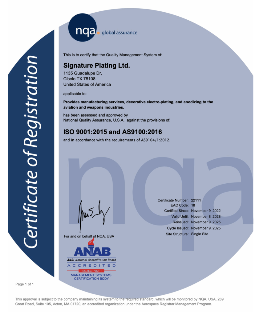 Please email any inquiries to info@signatureplating.com.